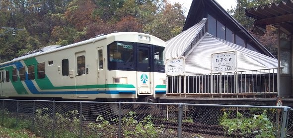阿武隈急行のこの駅は、阿武隈急行宮城県最南端、福島県との県境にある無人駅です。周りを山で囲まれ、北側にはライン下りが楽しめる阿武隈川が流れる自然豊かな地にあります。この駅のある丸森町の地域産業伝承館が併設されており、東北の駅百選にも選定されています。2019年10月の台風被害で最後まで不通区間となっていたこの区間は、懸命の復旧作業により、2020年10月31日から営業運転を再開、11月1日からは、上下線とも始発からダイヤ通りの運行となりました。